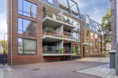 Via de hal met trapopgang, meterkast en toilet komt u in de royale woonkamer (ca. 30 m²). Dankzij de grote glaspartij aan de achterzijde baadt de woonkamer in het licht. De openslaande tuindeuren zorgen daarbij voor een prachtige verbinding met de tuin. De begane grond is geheel voorzien van een stijlvolle antracietkleurige PVC-vloer met vloerverwarming.